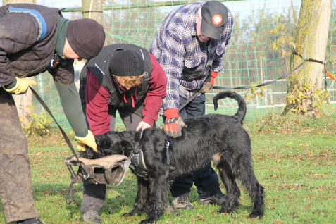Im November waren Ralf und Gerry wieder bei uns und wir konnten mit den Hunden arbeiten. Herr Cardhu bekam wieder einen Kleinen Schliff in den Winkeln und später auch beim Bringholz.